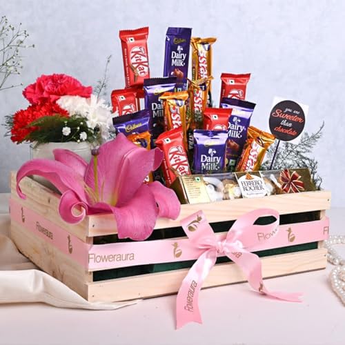 • Fresh Live Flowers: Four enchanting mix flowers adorn the hamper, adding a touch of natural beauty and elegance to the ensemble.